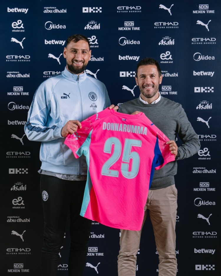 9月12日讯 曼城官方更新社媒动态,晒出新援门将多纳鲁马的亮相照片。