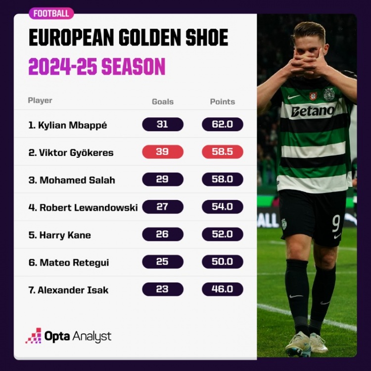 7月14日讯 多方消息确认,阿森纳即将签下葡体中锋约克雷斯。数据统计显示,他也是本赛季欧洲金靴积分第二名。