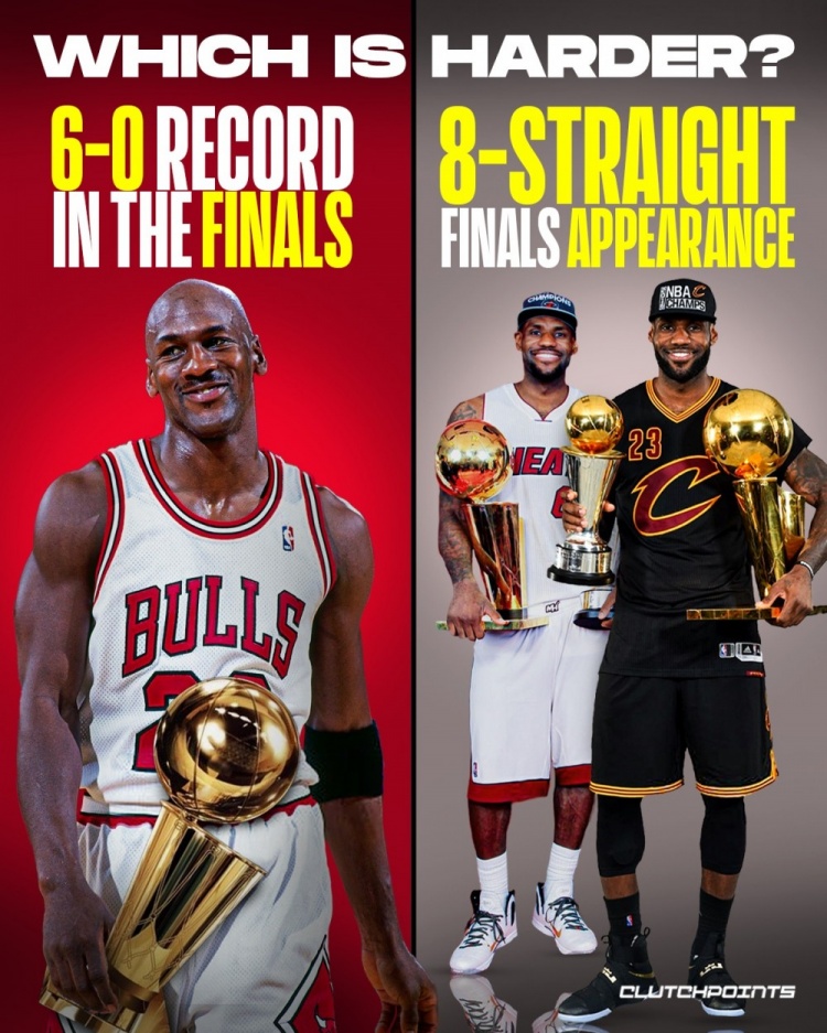 美媒发问:乔丹总决赛6胜0负 詹姆斯连续8年进总决赛 哪个更难?